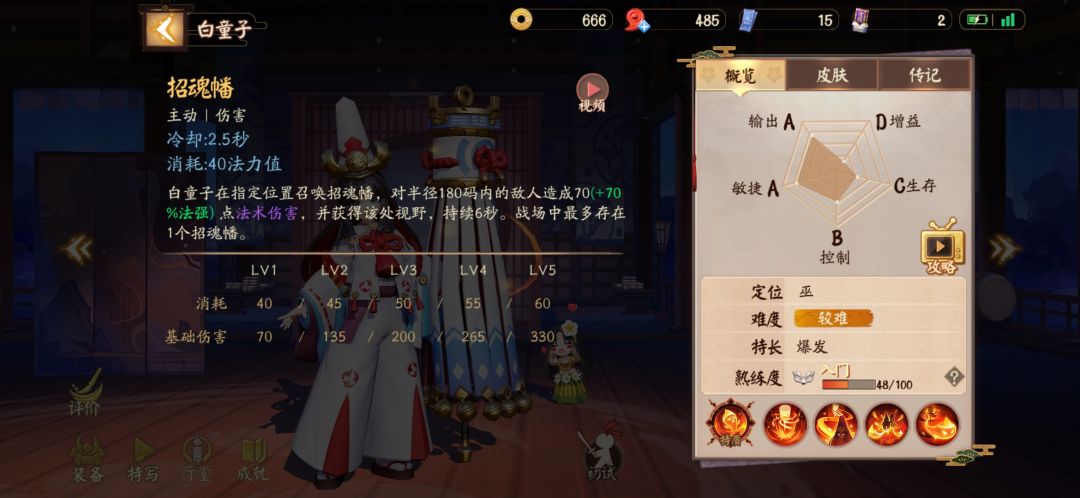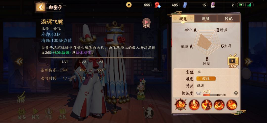 说实在的,没出白童子时,这里刚听到这个技能以为是个队友增益技能,好吧并不是。二技能作为白童子唯一的位移技能,决定了这可以是一个先手开团法师的资本,提供的短暂加速效果能够更好的调整站位,另一方面也是可以用来保命,具体可以参考妖琴的三技能用法,不过这里提下,唯一的触发机制是在有一技能的前提下。被动,你攻击招魂幡内的单位时招魂幡也会放出灵魂攻击该单位,并能够叠加特质层数。这也是决定了白童子需要普攻的关键技能。