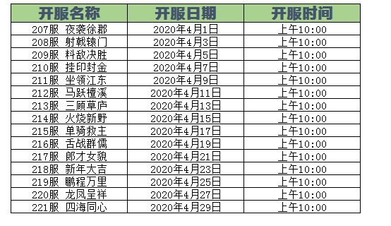 《萌将风云》2020年4月开服计划表