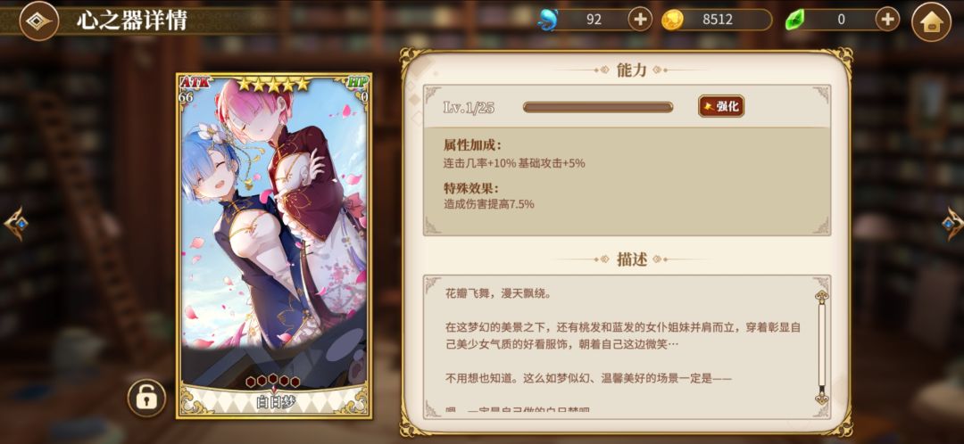 白日梦这个真的好用,加伤7.5%,加基础攻击5%。但是没法突破,比较难抽,可以换个加暴击或者别的加伤的。