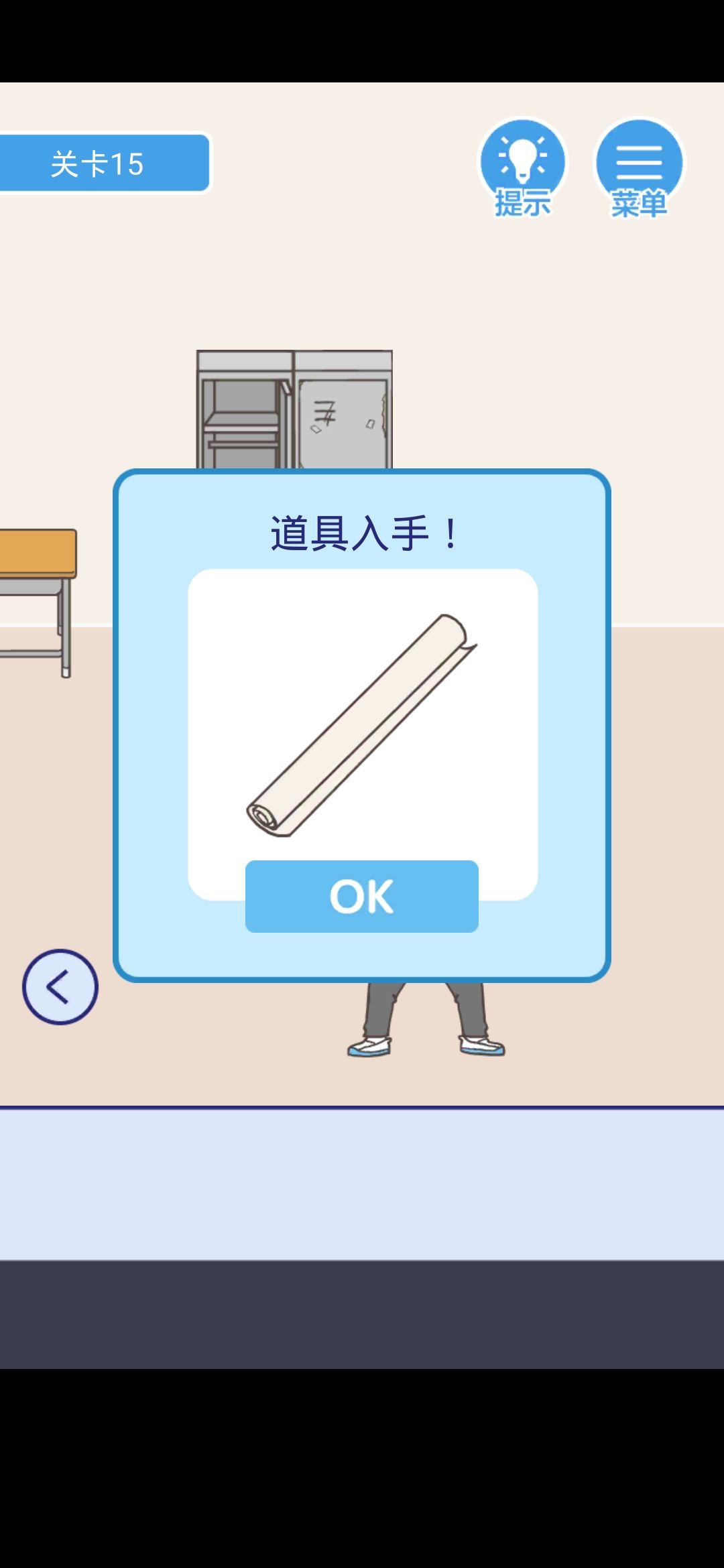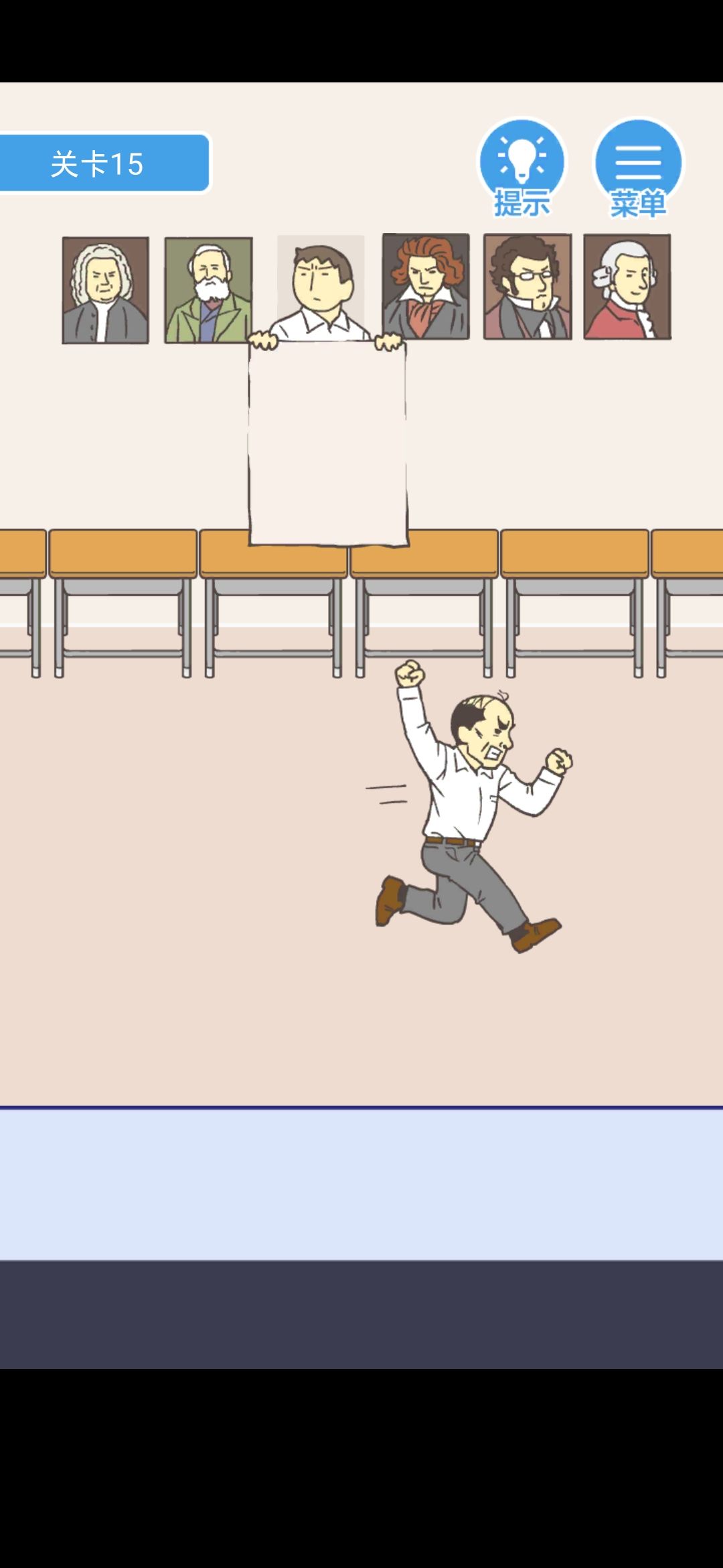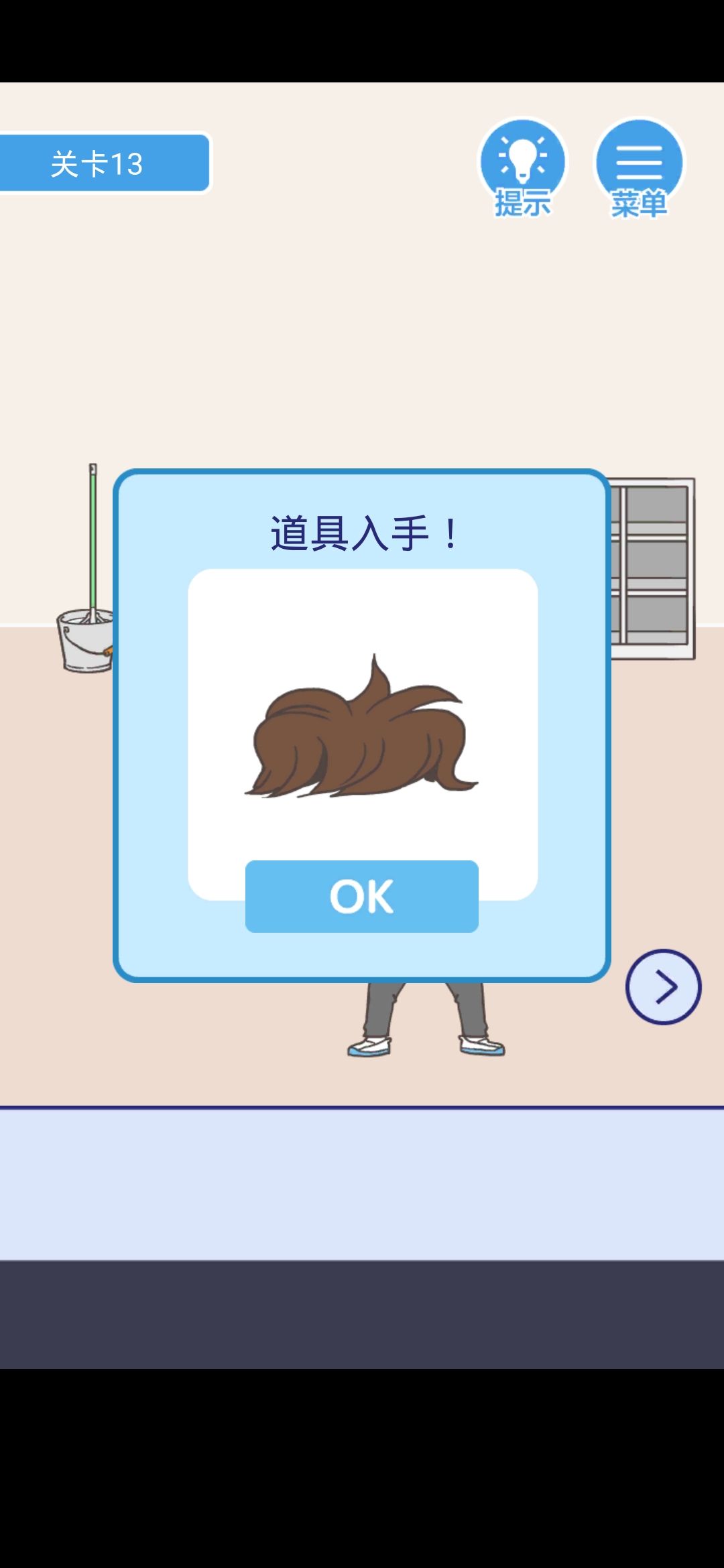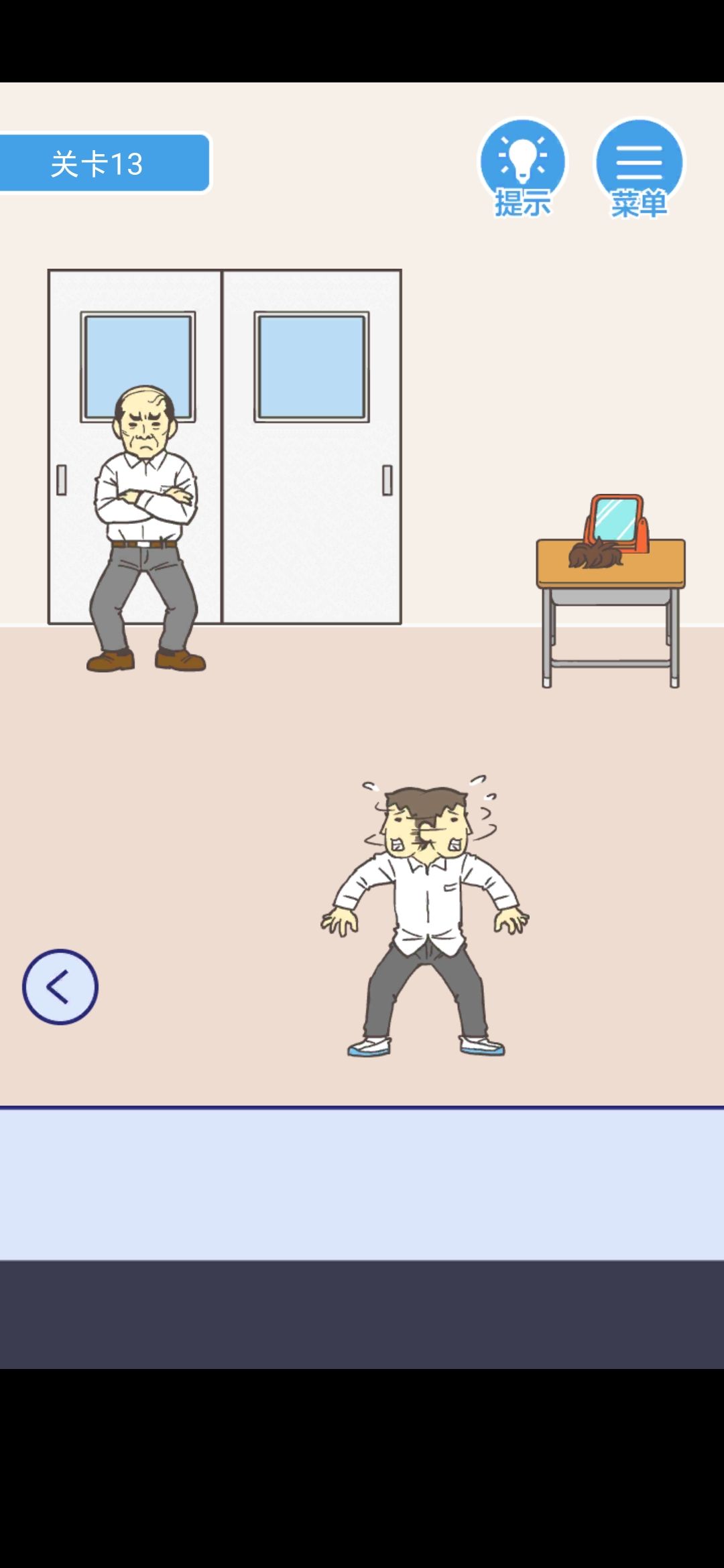 点击柜子里的假发,放在右边的镜子前面,再去左边,回来后你将发现老师在试假发,趁机逃跑(老师:我秃了,但我也变强了)