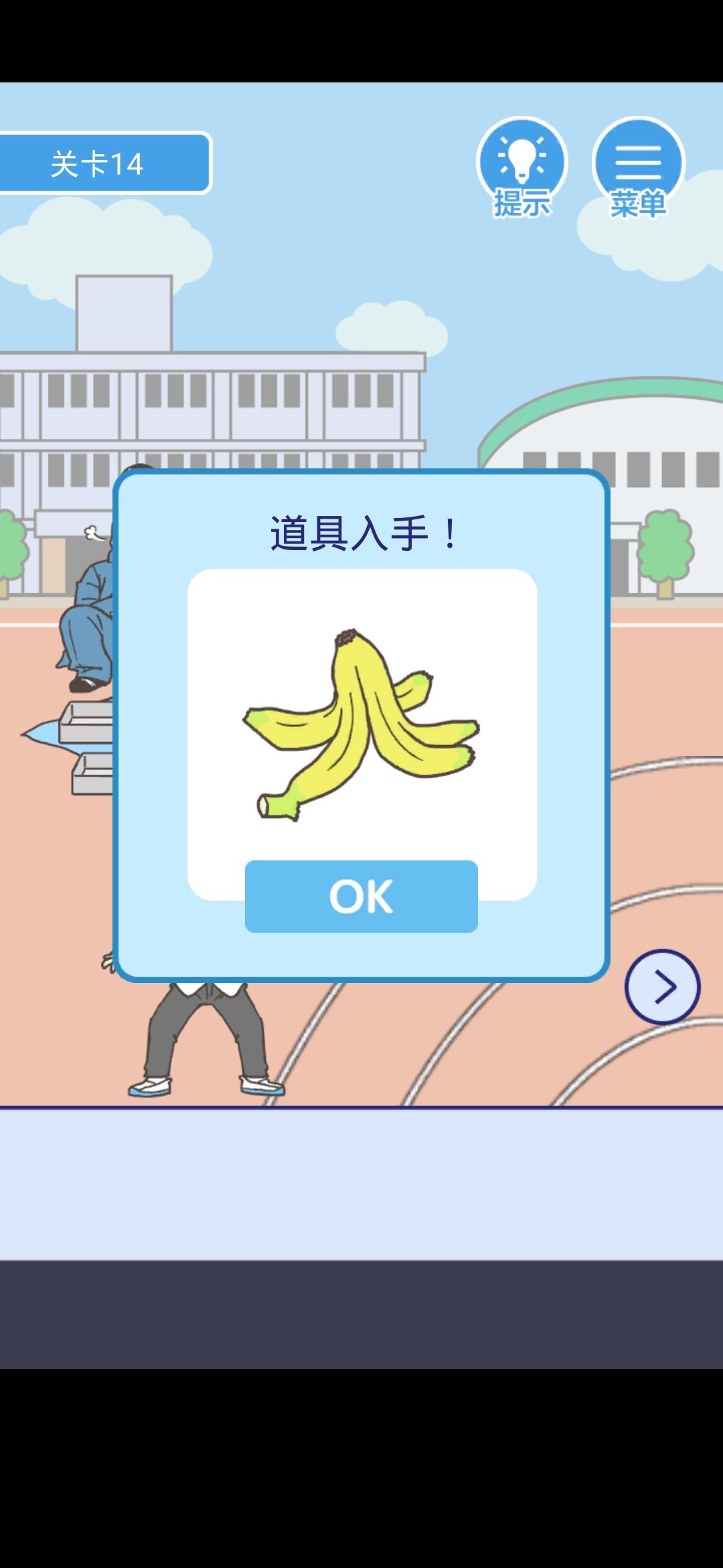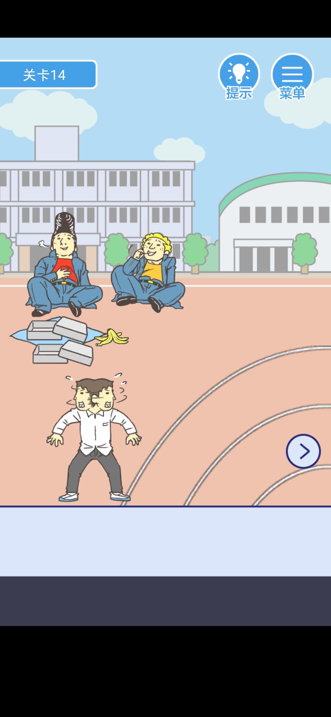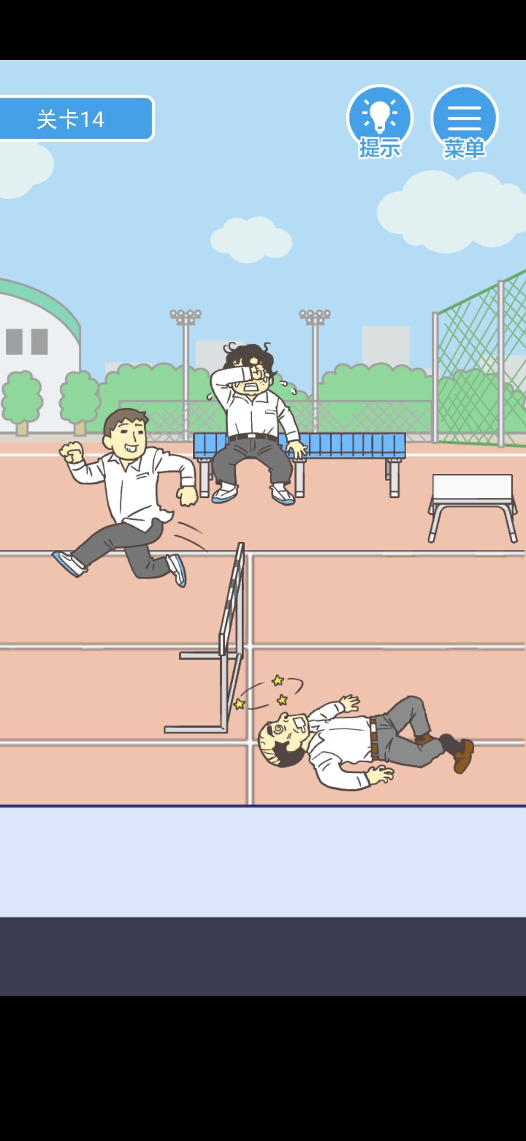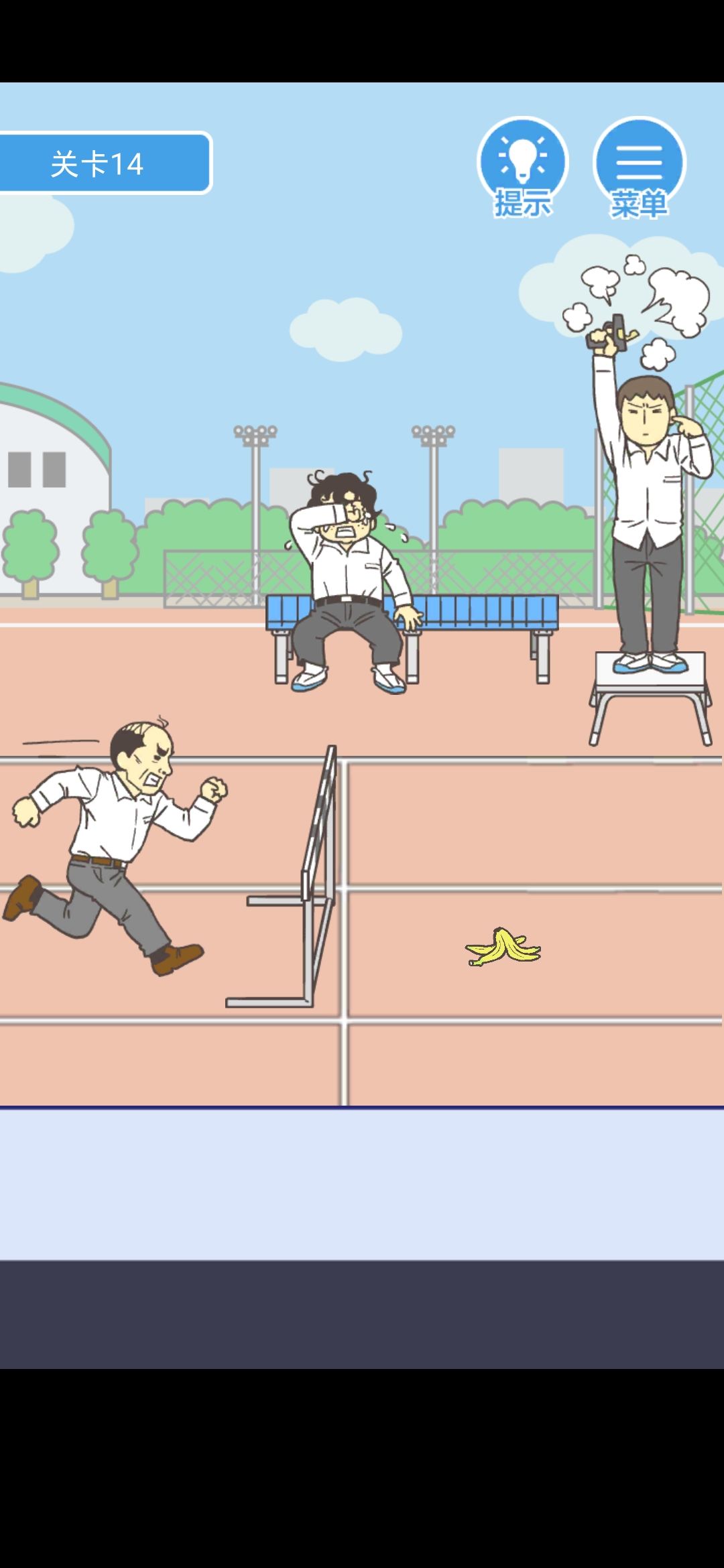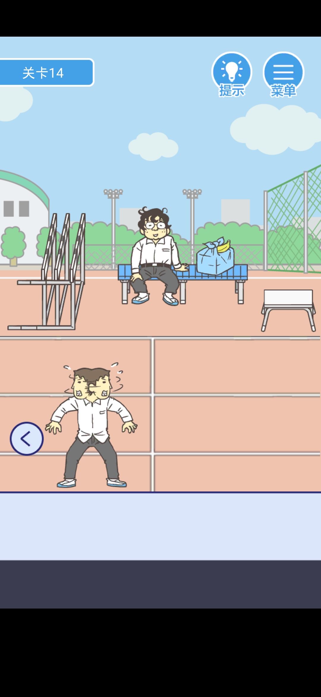 点击小胖身边的盒饭和跨栏的栏杆