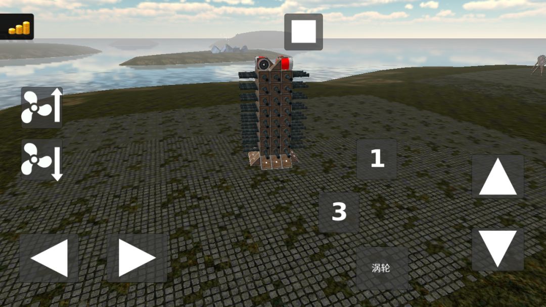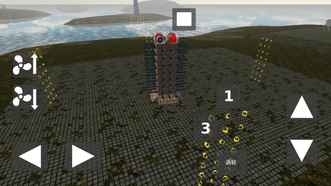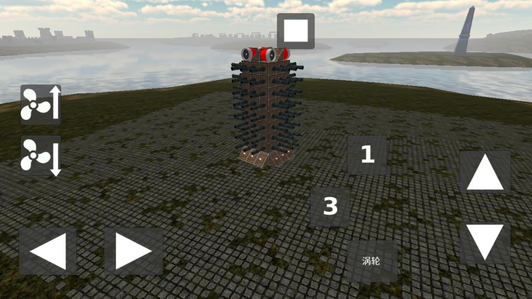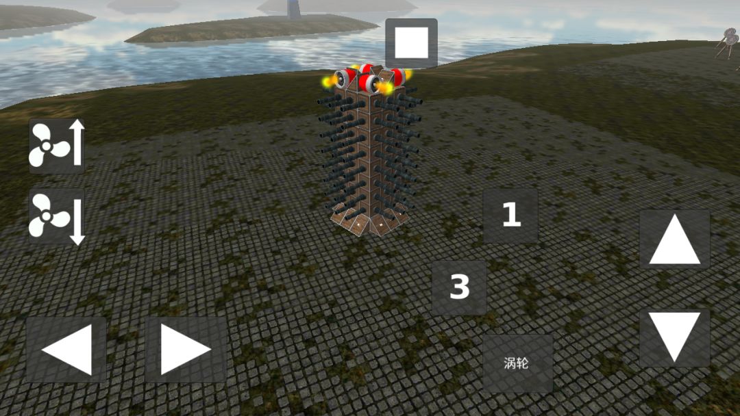 涡轮可以改变大炮方向(其实按钮1可以不用的,按涡轮就行,这个是按着原来的设备改的,懒得把按钮去掉)(看到图一右上角那个柱状物体了吗,就是要打那个)对准之后,发射!
