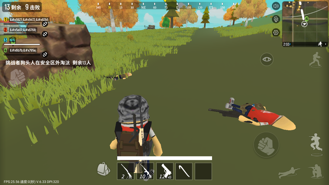 还有sks真好用,以前觉得sks伤害一枪不如98k,而且照样开一枪准星往上面跳,不过有一次sks爆了一个没头(盔)的头,直接杀,看起来和98k伤害差不多,而且配件差不多了也不会很飘,如图是刚刚在大街上绕石头2倍镜sks一打三多帅哦2333