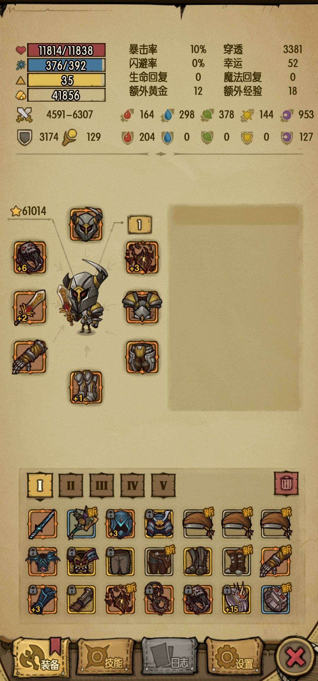 技能加点上面攻击力10点暴击10点下面先点了4点额外黄金,其他的点幸运感觉幸运用处不大,应该全点黄金的,钱多才是真理