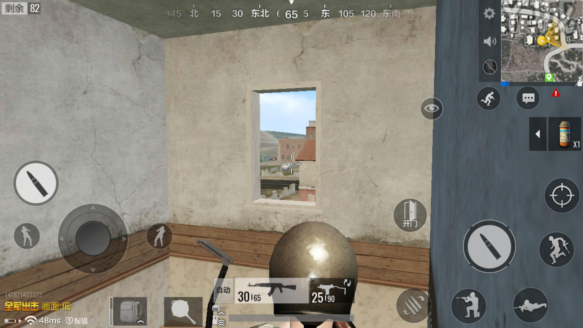 在进入三层露天天台的对面,有一个小型的窗口,这里将是击友一个绝佳的卡点位置。击友踩在楼梯上,可用配置4倍或者8倍狙击瞄准镜的高性能狙击枪,例如98K或者AWM都是不错的选择,对楼外的柏油主路和射击路线上的各建筑窗口以及远处的山路实施精确的卡位。虽然窗口的面积较小,供给击友射击卡点的区域较小,但该点位却能为击友提供更隐蔽的射击环境。卡点的击友在射击一发子弹后,还可通过楼梯上下移动的方式将自己身型完全隐藏于房间墙壁后,从而完全躲避开敌人的报复性射击。该点位适合学习远程精确狙杀的初中级击友使用。