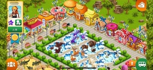 在游戏正式开始后,您除了购买各种动物之外,还需要为每一种动物购买适合它们的栖息地,并将动物放置在栖息地中。您可以点击游戏画面右下方的购物车,选择您需要购买的动物和栖息地,放置在动物园中,动物园就算是完成初步的建造了。为了完善园内各种设施,您可以购买动物园内的不同摊位,为游客们提供最大的便利,比如冰激凌摊,爆米花摊,纪念品摊,果汁摊等,应有尽有。每一种摊位都会为您带来更多的收入。随着园区面积扩大,您升级摊位,收入也会提升。