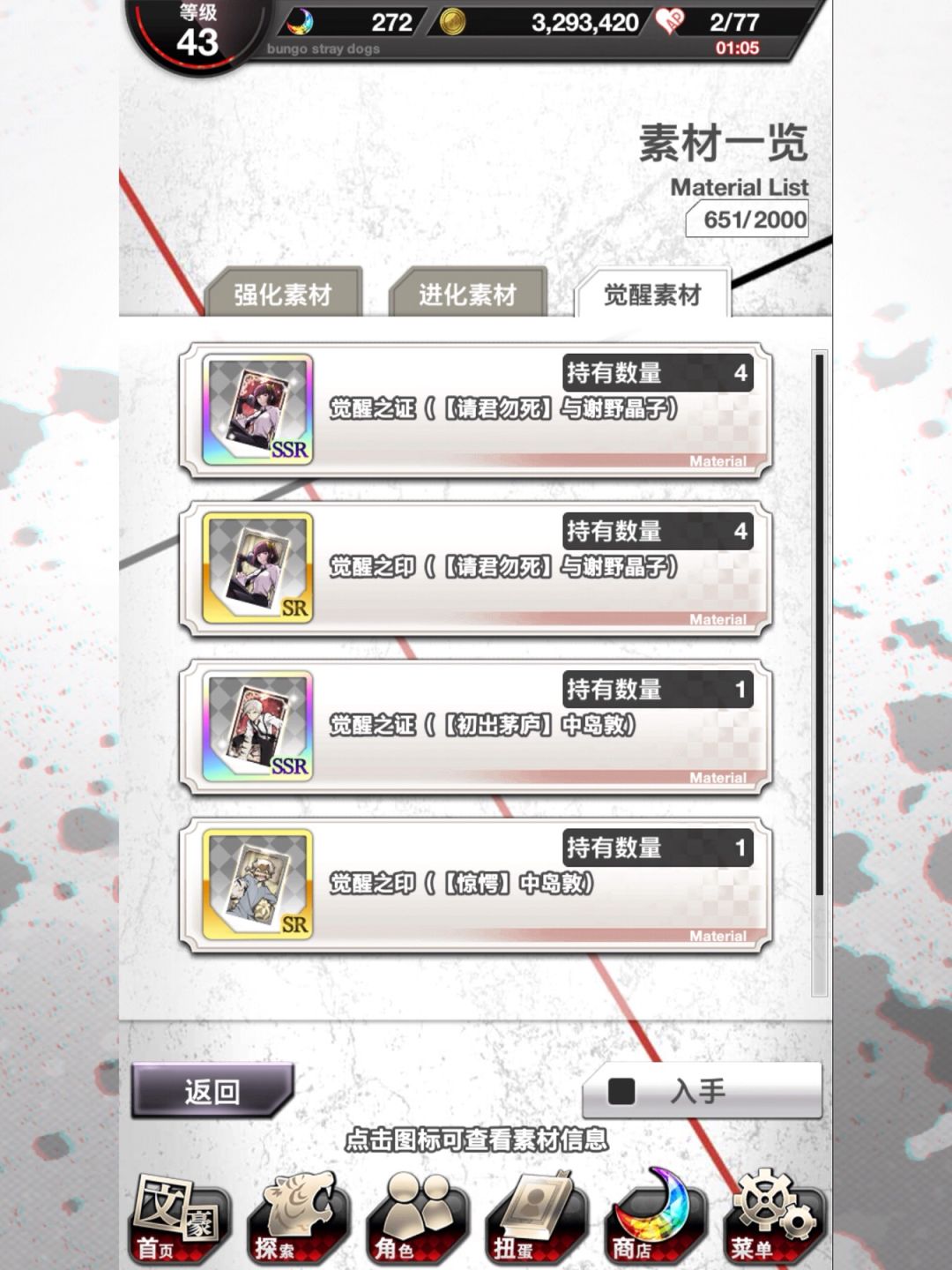 【提问】与谢野觉醒要多少张sr素材,多少张ssr觉醒素材