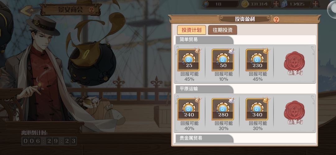 4. 商会的特殊奖励(珍贵货物-生煎飨灵),同理上一条,建议大后期再考虑(单价较高,前期买很吃亏,不如先投资大航海~)