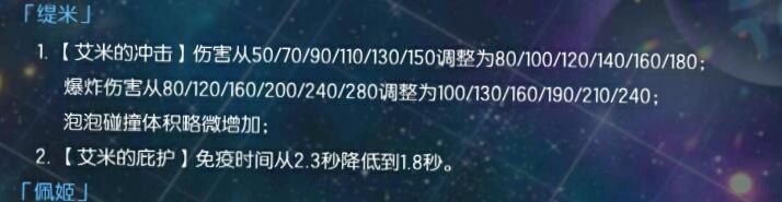 大招免疫时间的削弱影响也很大,被动加大招共少了一秒的无敌,这就导致了缇米的保命反杀能力降低,很多时候技能只差一秒cd就能反杀,这对于短腿法师来说很致命。