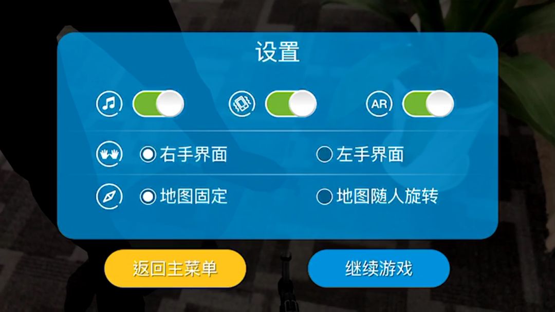 点击右上角可以进行设置,设置是否开音效,是否开启AR模式,是否开启震动反馈等。