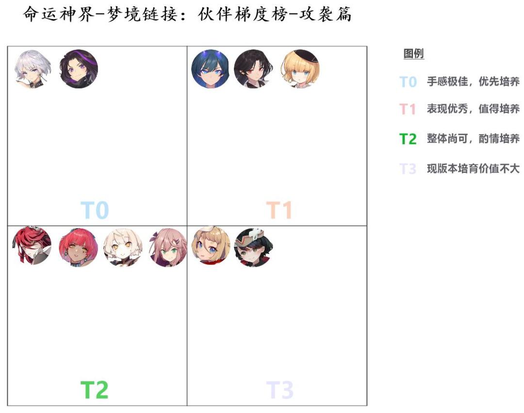 公测在即,为解决小伙伴们的疑问,让大家在公测有更好的推图体验,本文制作了这一期命运神界-梦境链接伙伴的梯度榜,资料来自自己在台服及几轮测试中的体会,同时参考了巴哈姆特论坛和官方2群“檞寄生”对台服伙伴的部分评测内容。希望对大家有所帮助。