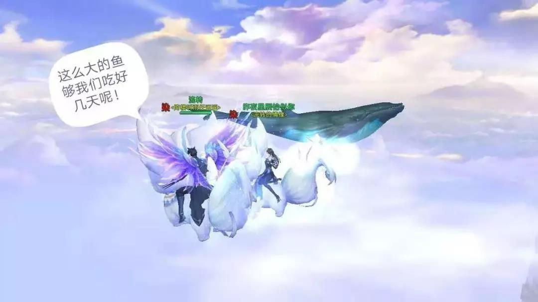 《天下》手游大荒世界无奇不有,你不仅可以在这里驯养小猫小狗小动物,还可以见到活在传说中的巨鲲!常言道:北冥有鱼,其名为鲲,鲲之大,一锅炖不下;化而为鸟,其名为鹏,鹏之大,需要两个烧烤架!当大荒吃货少侠们在云海之上偶遇巨鲲,脱口而出的第一句话竟是“这么大的鱼够我们吃好几天呢!”说吃就吃,难道神兽不要面子的吗?