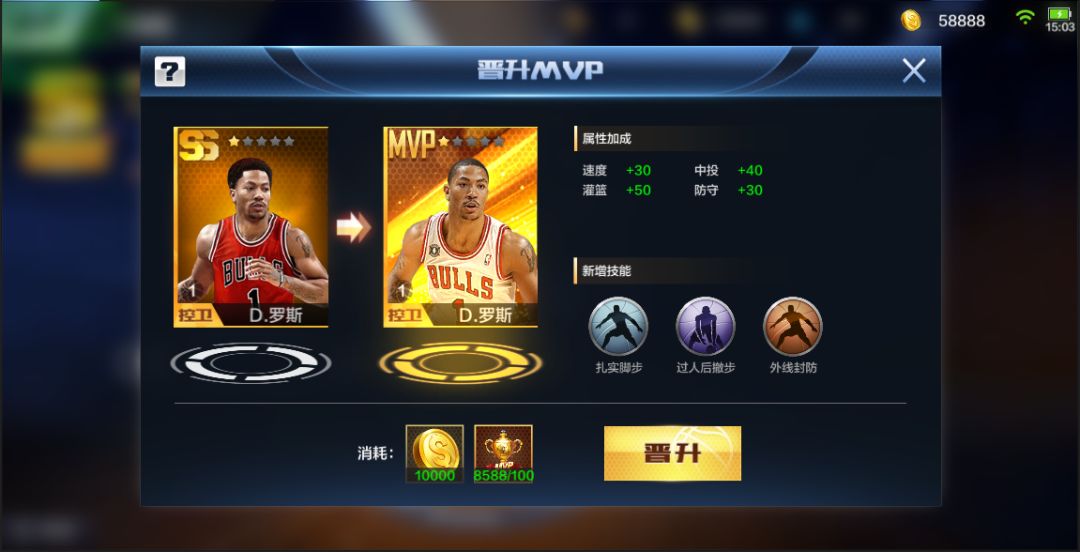 罗斯晋级之后,速度、中投、灌篮和防守皆有提升,增强了罗斯在攻防两端的统治力,队长们可以到游戏中进行体验啦。