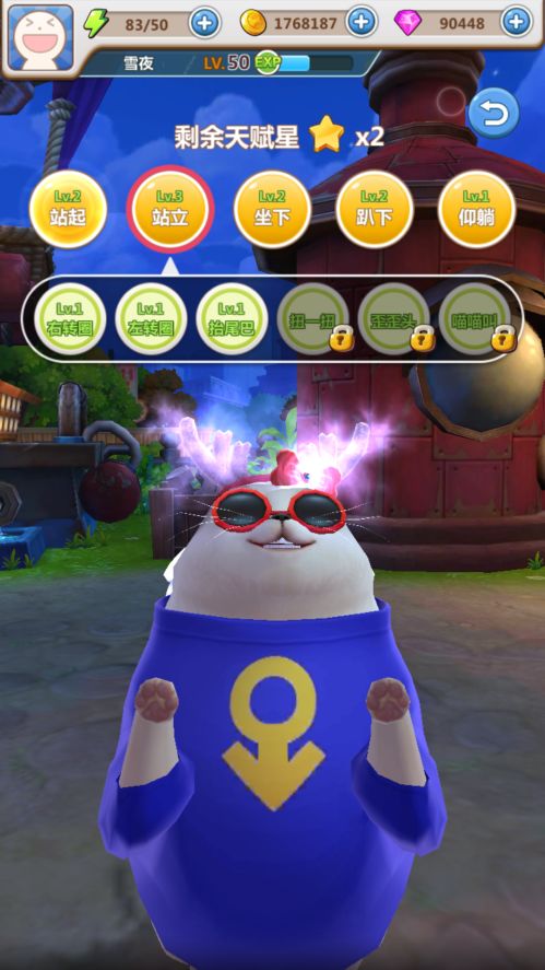 首先,在主界面的【养成】一栏中就有【训练】,目前共有7个训练动作,每个训练动作类别下又分为若干个小动作。比如在【站立】一训练类别中就分为转圈、抬尾巴等小类。当你通过反复训练,对训练动作烂熟于心时,便可以参加【大赛】了。