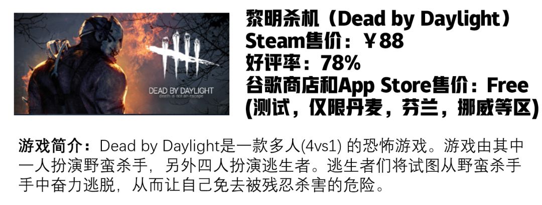 这款游戏玩法被网易某第五人格类似,画风更侧重于写实恐怖,目前安卓移植版体验还是比较不错的,游戏支持中文并且会根据设备自动调节配置,还原度也非常高,希望公测会有更好的表现。