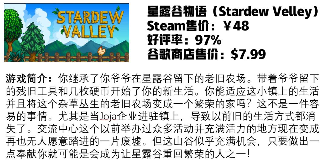 (注:游戏卡片中的好评率为steam全部评测的好评率,截取时间为7月7日,steam售价为平时售价,简介来自于steam官方介绍或是鉴赏家评测)