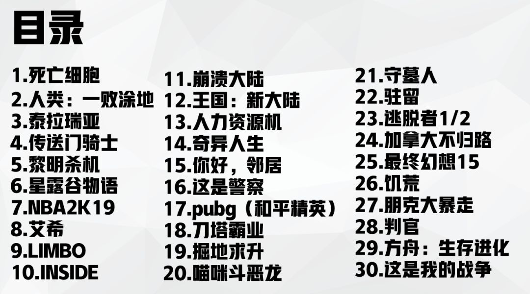 (排名不分先后,部分游戏见评论区,可点击“只看楼主”方便查阅)