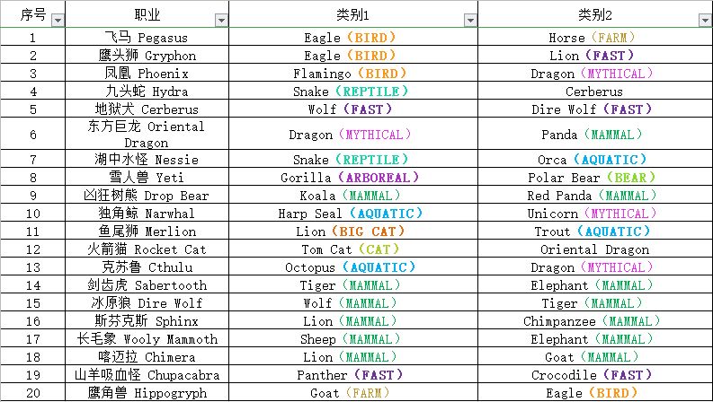 中文合成攻略(目前349职业和20个秘密类动物合成方法)