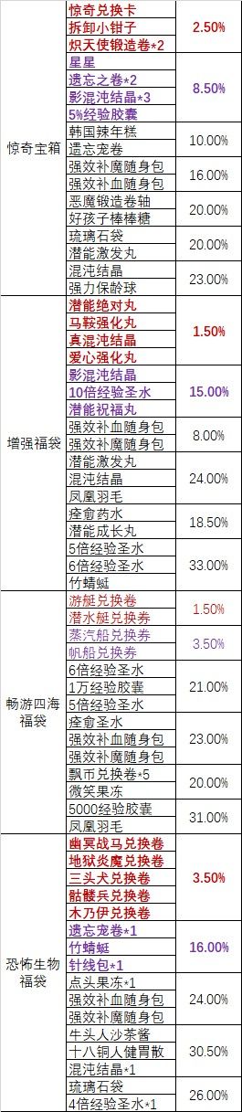 注:惊奇兑换卡(任选其一):遗忘之卷*2、影混沌*3、5%经验胶囊、炽天使锻造*2、星星*2、胜利金牌
