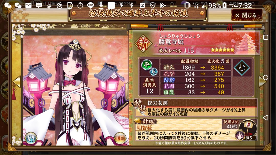 计略:增加所选范围内所有城娘攻击力1.8倍。