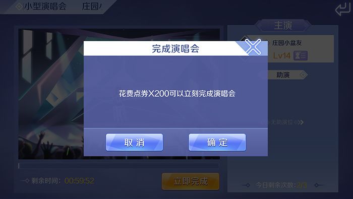 音悦汇中的演唱会奖励不同,完成演唱会所消耗的时间也不同,成功开启演唱会可以查看剩余完成时间,等时间到了后才可以获得奖励。另外演唱会中,还支持快速完成,不过会有一定的消耗。66不太推荐小主人们这么做,因为演唱会只要放置一段时间就好啦,所以不用太心急唷。