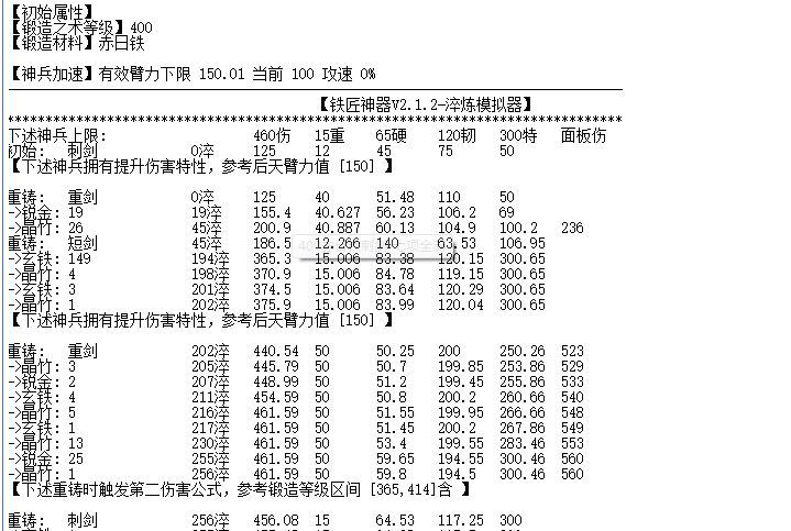 如果懒得计算上述过程的少侠,可以使用易诚大佬的<铁匠神器>,直接计算出结果。而小遁大佬的<放置江湖神兵重铸模拟表>计算重铸第一伤害公式非常精确,但计算重铸第二伤害公式时无法保证数据的准确性,使用时一定要慎重。