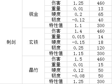 武器初始伤害:根据材料和兵器类型的不同会有变化,详情可以在《神兵奇录第0章(3)神兵锻造初始结果一览》表格中查阅。
