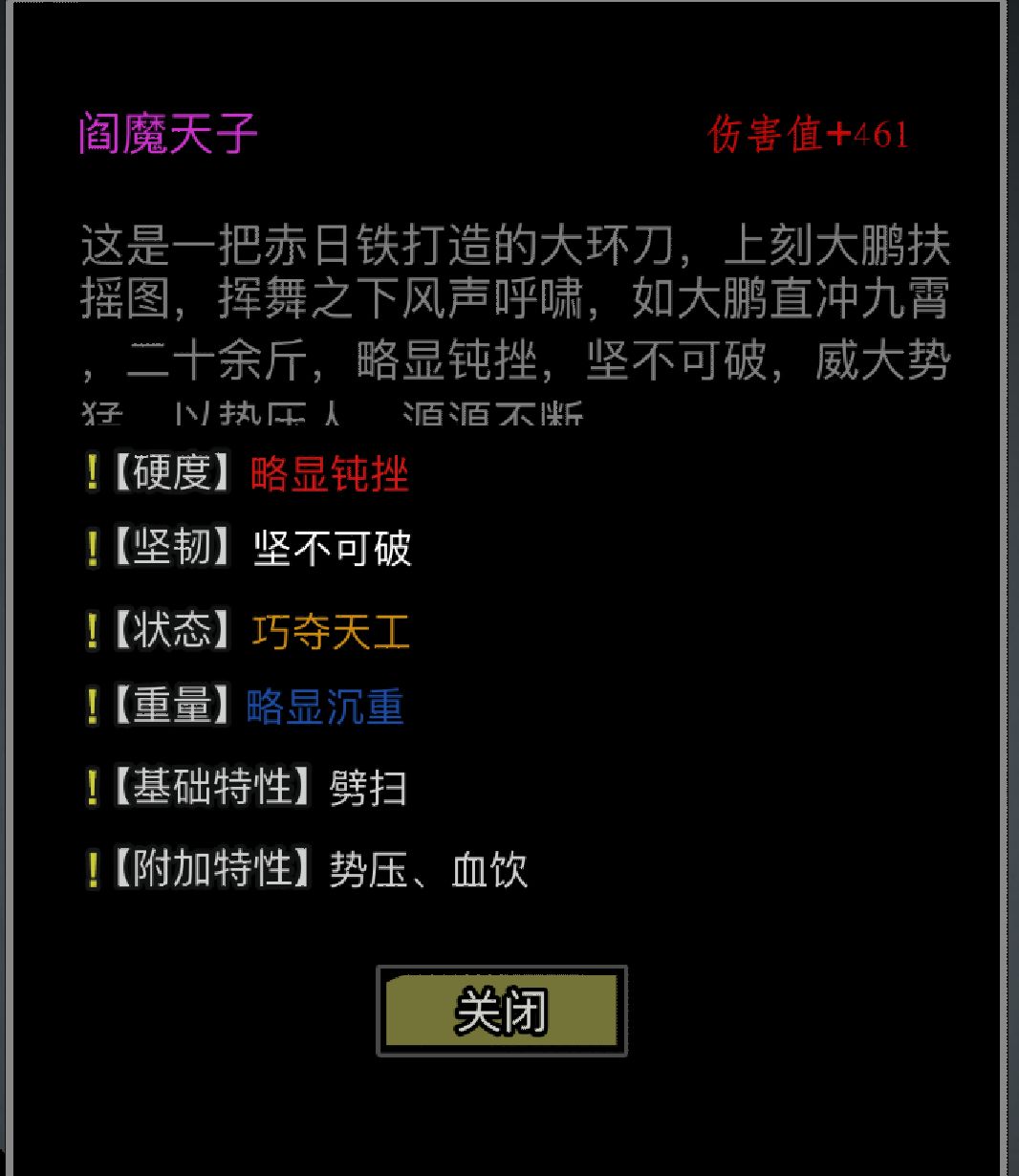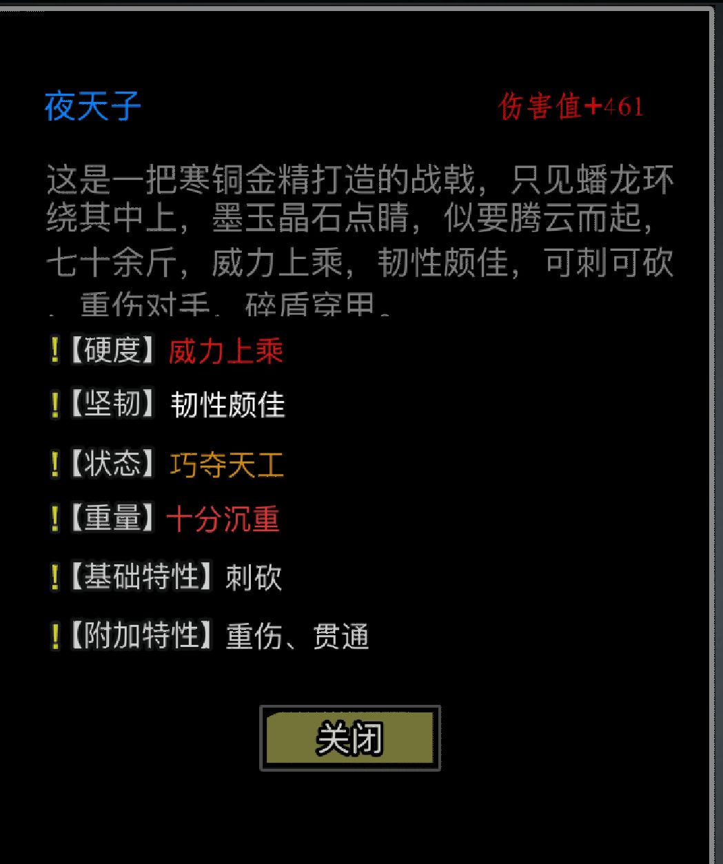 放置江湖的神兵在伤害到达460后,便不会再增长,但如果在伤害未满460时,巧妙的利用淬炼机制,便可以使伤害突破系统的限制,到达461的峰值。举个栗子:假设我有一把伤害为459.7的刺剑,此时如果淬炼一次玄铁,那么伤害为459.7+1.4=461.1,这样就算卡461成功。但如果此时淬炼一次锐金的话,伤害为:459.7+1.25=460.95,就算失败了。