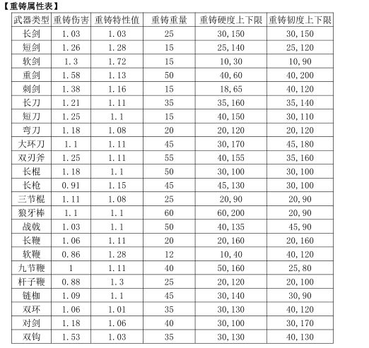 在此先放一张重铸属性表,计算重铸伤害时,此表很重要!!!
