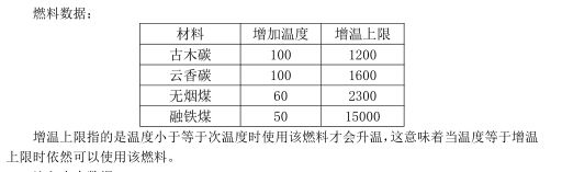 划重点:以使用初始锻造炉为例,初始炉温800度,加入4个古木碳后,温度达到增温上限1200度,因为增温上限指的是温度小于等于次温度时使用该燃料才会升温,所以温度到达1200之后,还可以使用一次古木碳将温度提升至1300度。