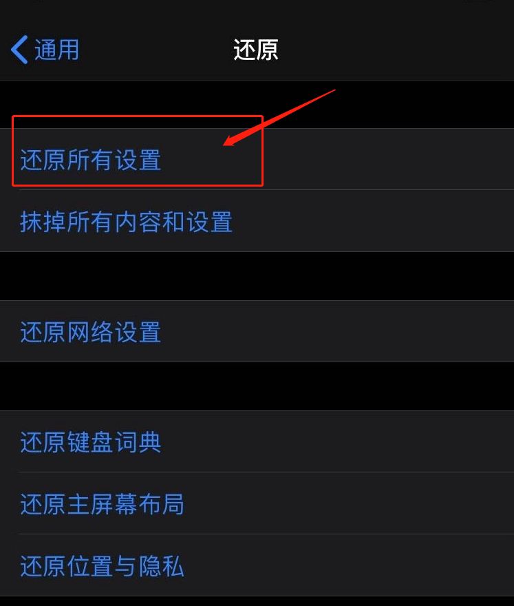 具体操作指引如下:设置——通用——还原——还原所有设置