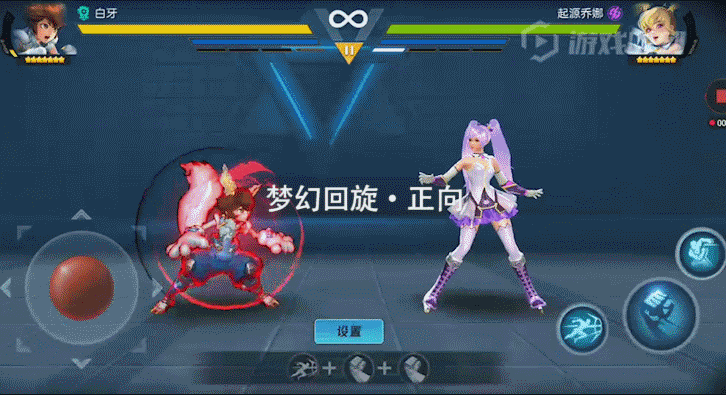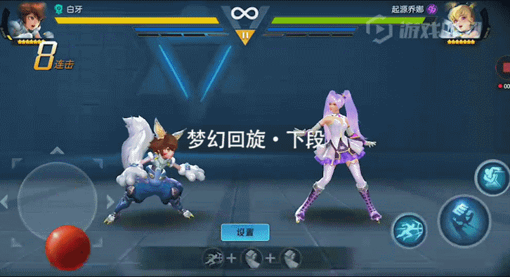 白牙在有两个技能,一个是梦幻回旋·下段(↓→A)是可以连续攻击敌人,半屏移动的攻击技能。
