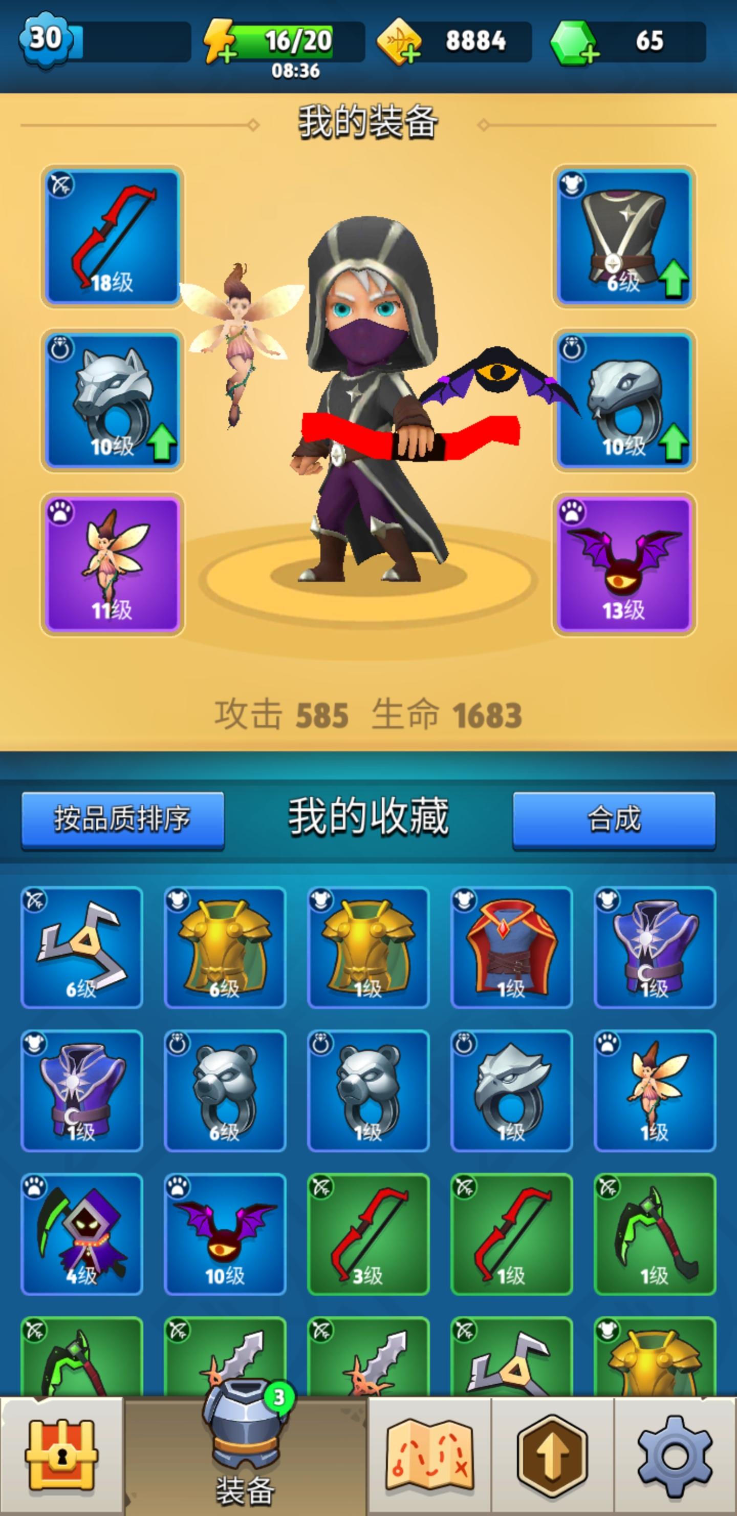 太非了,天天刷第三关,无聊啊,装备爆率太感人。攒了3000,遇不到卖史诗武器的奸商,手贱,抽宝箱了,就一个紫蝙蝠,弃坑了。