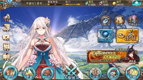 根据玩家冒险等级的提升,“工坊”系统也将随之解锁,并出现在手游主界面的下方。点击“工坊”按钮即可进入操作界面,以后这里就是各位冒险者的锻造工作间啦。