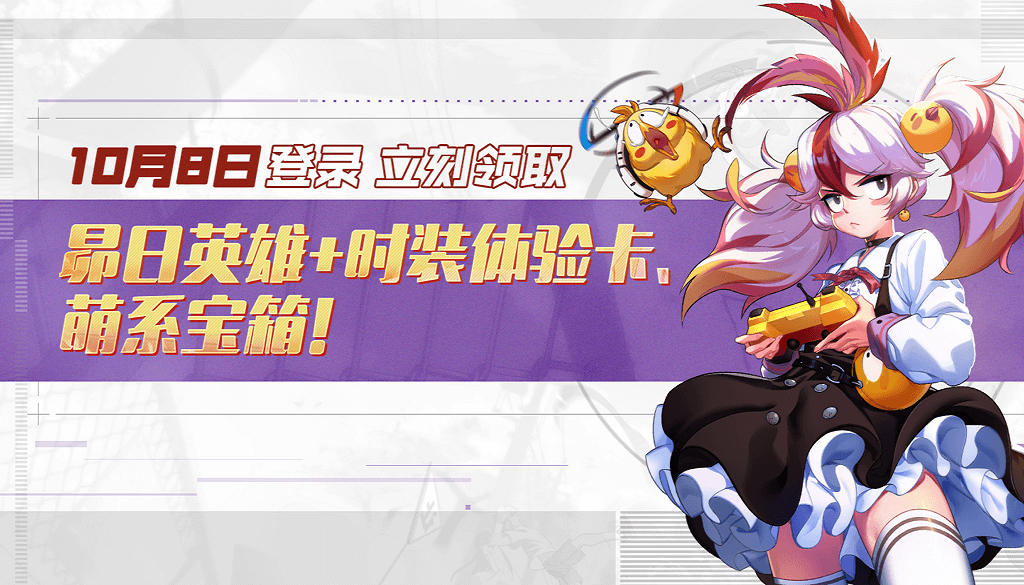 【10月8日,登录就送昴日英雄+时装体验卡、萌系宝箱】