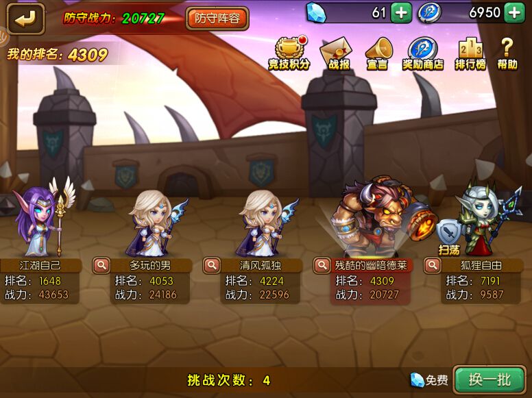 当我们在竞技场中取得一定名次之后,系统会在每晚9点时为大家带来丰厚的奖励。另外告诉大家一个小秘密,只要你对自己英雄阵容足够自信,大家完全可以试着欺负一下比自己战力高出一小截的玩家,不要告诉别人哦。