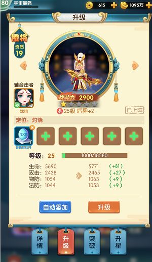 突破提升神将属性,开启神将天赋需要消耗突破丹,突破第三次需要消耗同品质橙将。