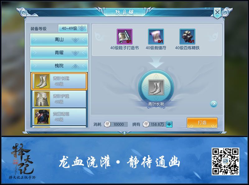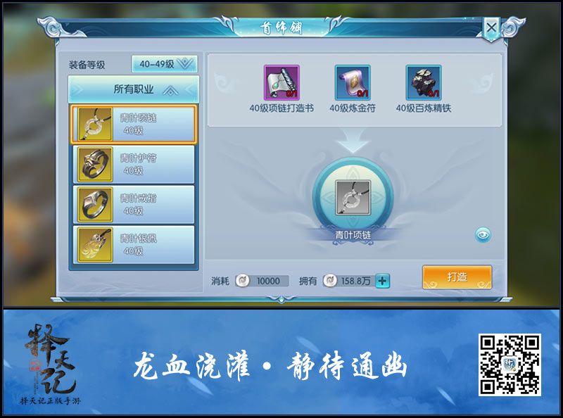 亲自打造装备,玩家需要满足以下几个条件: