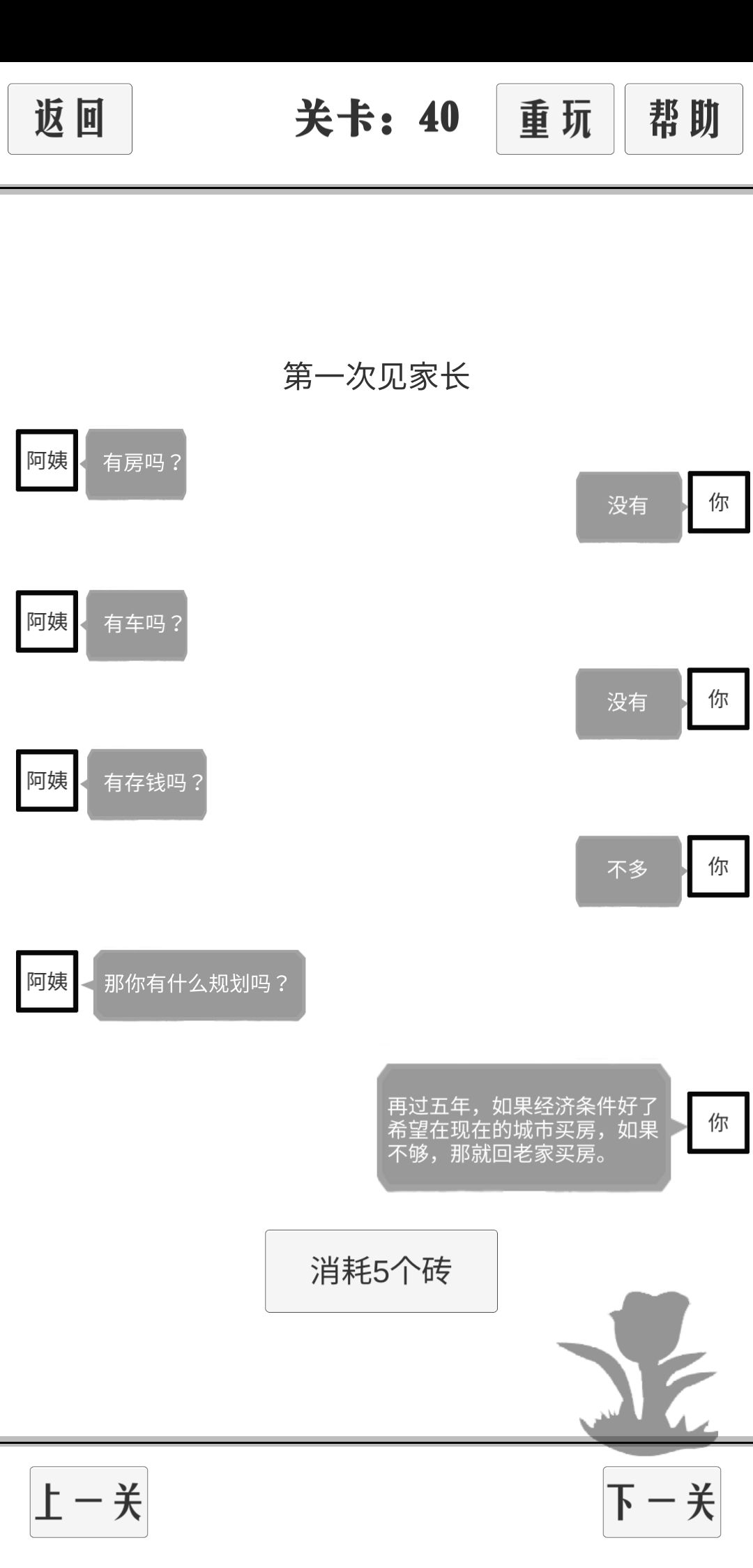 垃圾游戏,固化思维,谈恋爱都是这个逻辑天下所有人都不会分手了,最垃圾就是这个破搬砖,到40关删了,因为没看视频选项