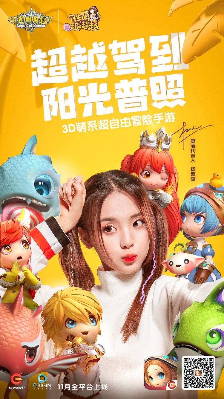 终于官宣啦!盛大游戏首款3D萌系超自由冒险手游今天正式宣布火箭少女101成员杨超越成为其超萌代言人,并宣布将在11月全平台上线!这个万圣节,甜度与颜值并存的超萌代言人杨超越邀你一起冲鸭!