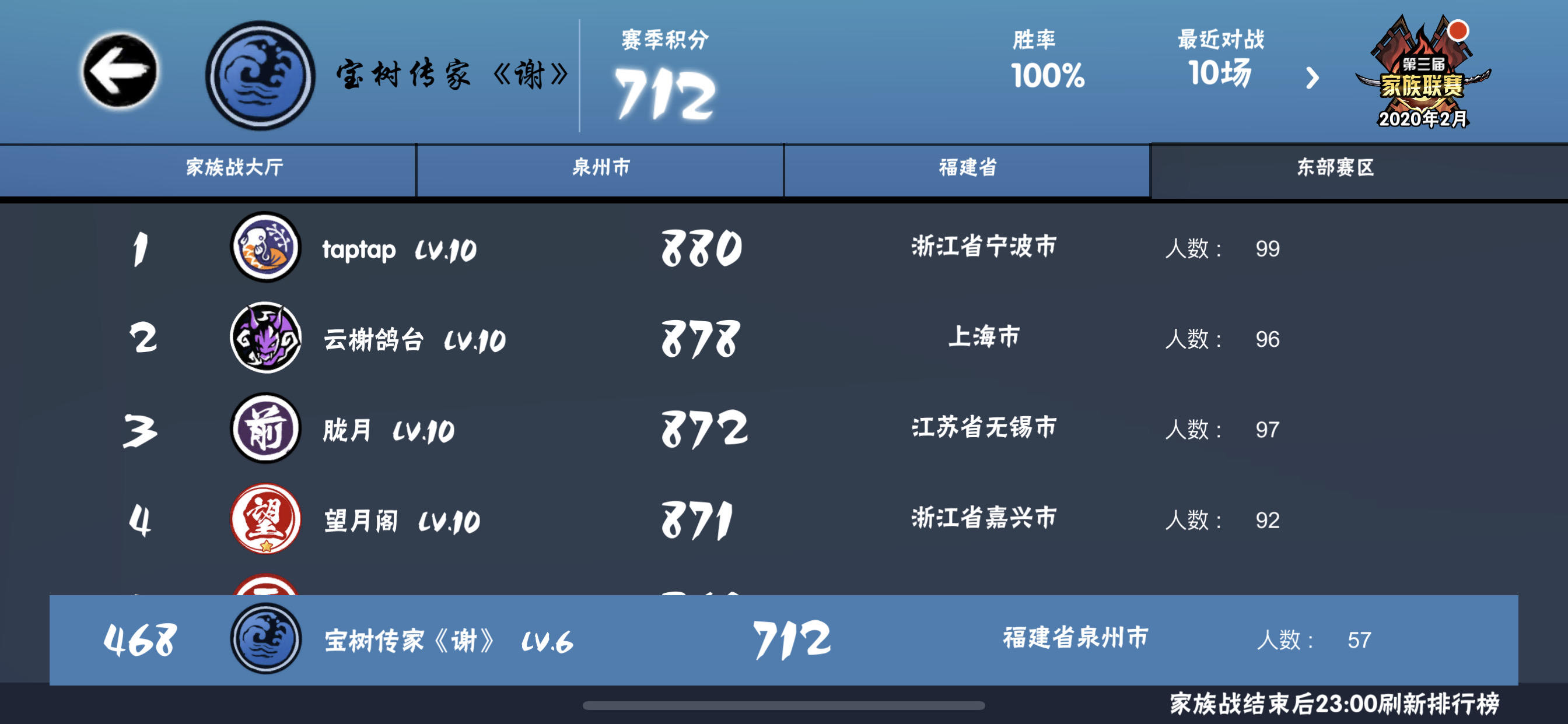 泉州地区七级家族(宝树传家)收人,影忍就行,要求活跃参加家族战深渊,团本必须活着跑完图,没要求太高 比如起码箱子不能少于35个,不能参加可以请假。目前灾祸已过 深渊29层 家族最高忍阶是极忍4星 不算太强也不会太弱 家族战胜率(目前)百分百 人员积极活跃 有兴趣的朋友可搜索(宝树传家 ) 我们努力让自己成为大佬 相遇即是缘分 欢迎各位