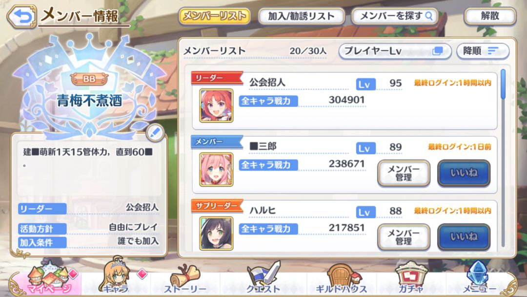 另:公会招新中,感兴趣的朋友请在游戏中搜索公会:一青梅不煮酒。我们的目标是建设友爱互助,热闹活泼的全游第一华人公会,快来加入我们吧,一起玩更开心哦(≧ω≦)/!