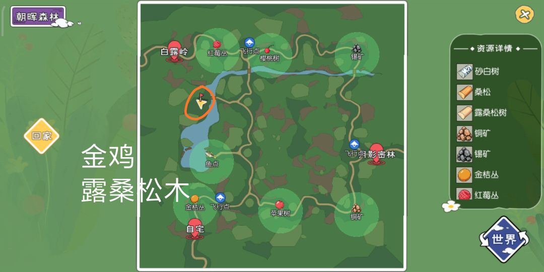 1.晚上刷新(应该是现实时间20:00以后),露桑松木刷新地点会刷新金鸡,产出金色羽毛,刷新时间不确定,应该在5-10分钟之内,根据评论区补充