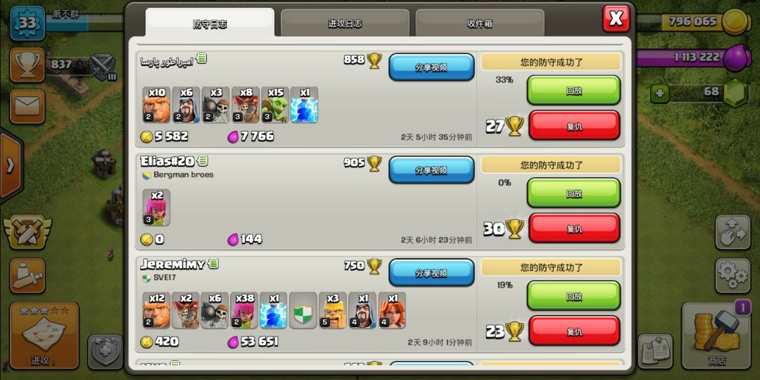 那个一小时的是气炮,方向朝大本营。一直是抢资源,所以杯不多→_→