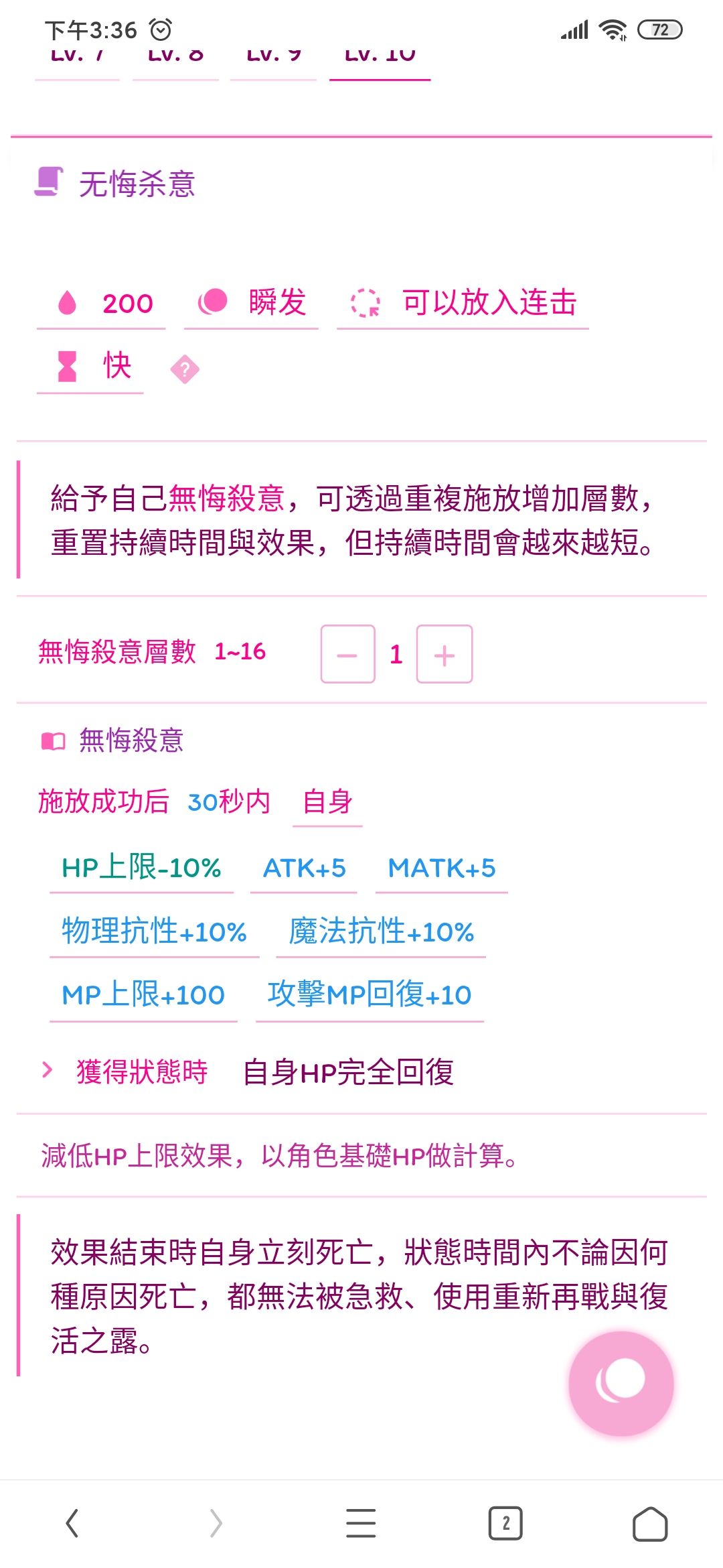 同时追击次数也是有上限的,上限大概是13次,攻速4700和行动速度30%的样子,每次追击回蓝30点的样子。