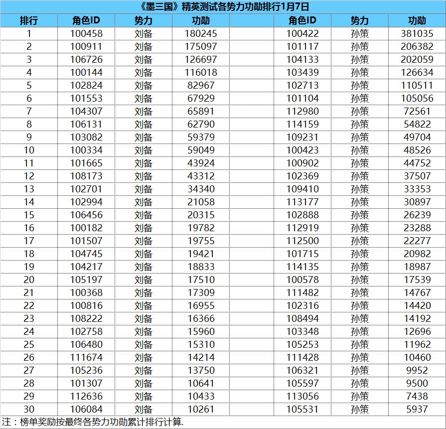 《墨三国》精英测试国战功勋排行榜