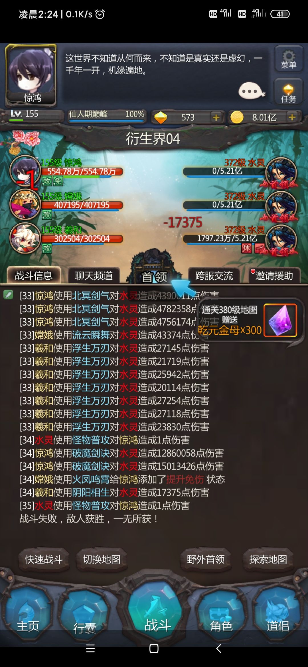 第一次打最后一只剩1e镜子触发就过了。刷了一个小时结果越打伤害越低