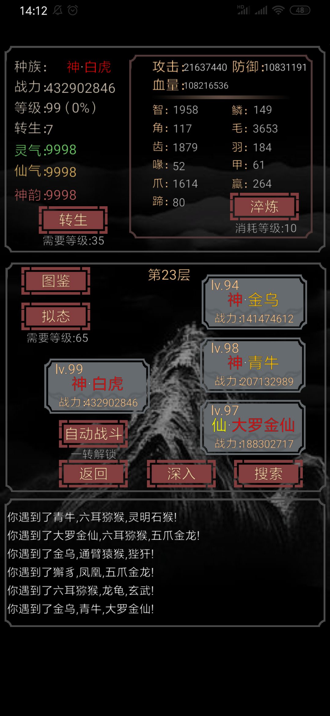 这游戏有4种类型的怪,也就是凡灵仙神。