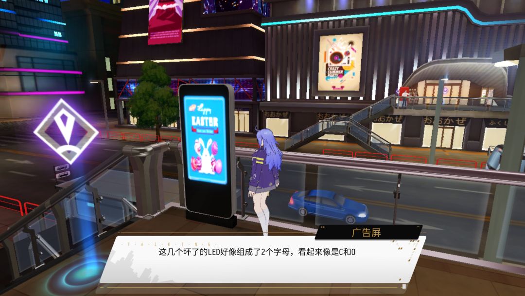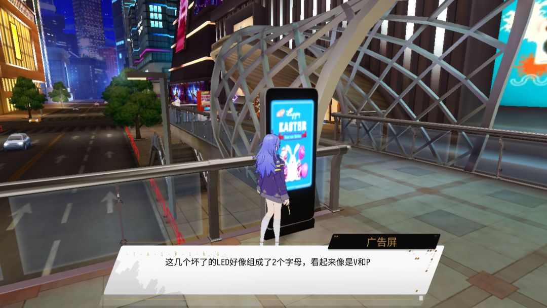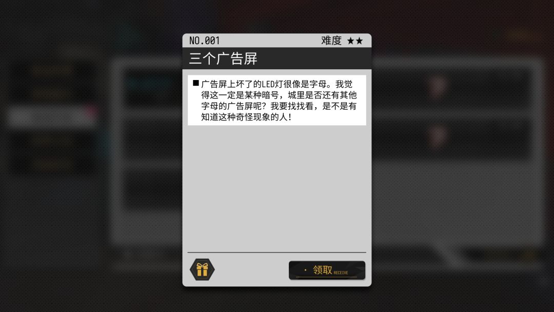 三个广告牌的异闻也难倒了很多玩家,其实特别简单,首先找到三个广告牌,记录其中的字母,可以截屏看字母
