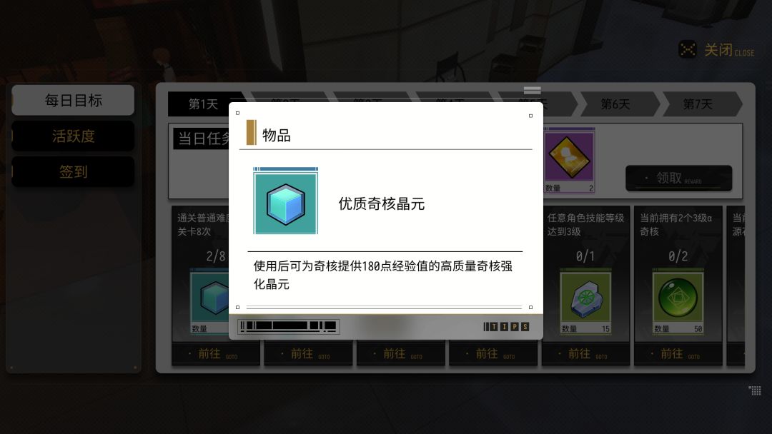 刚开荒完事没事干,一定要清每日任务,然后获得这个"优质奇核晶元",升级"奇核"为下面的主线奠定基础,所以说千万不要摸鱼!